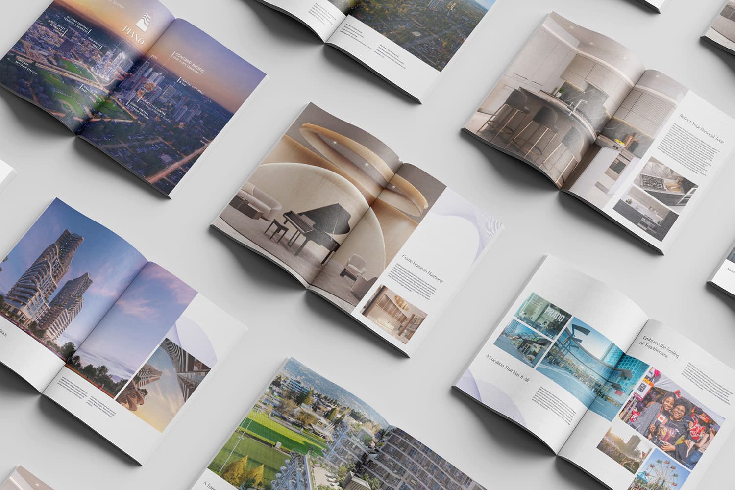 We worked on a variety of print material for Piano. The common thread weaving through these diverse pieces was the incorporation of a wave—a distinctive brand element that injected a sense of fluidity into our designs.